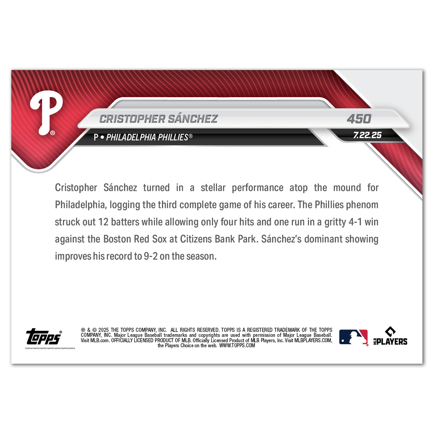 Cristopher Sánchez - 2025 MLB Topps NOW® - Card 450