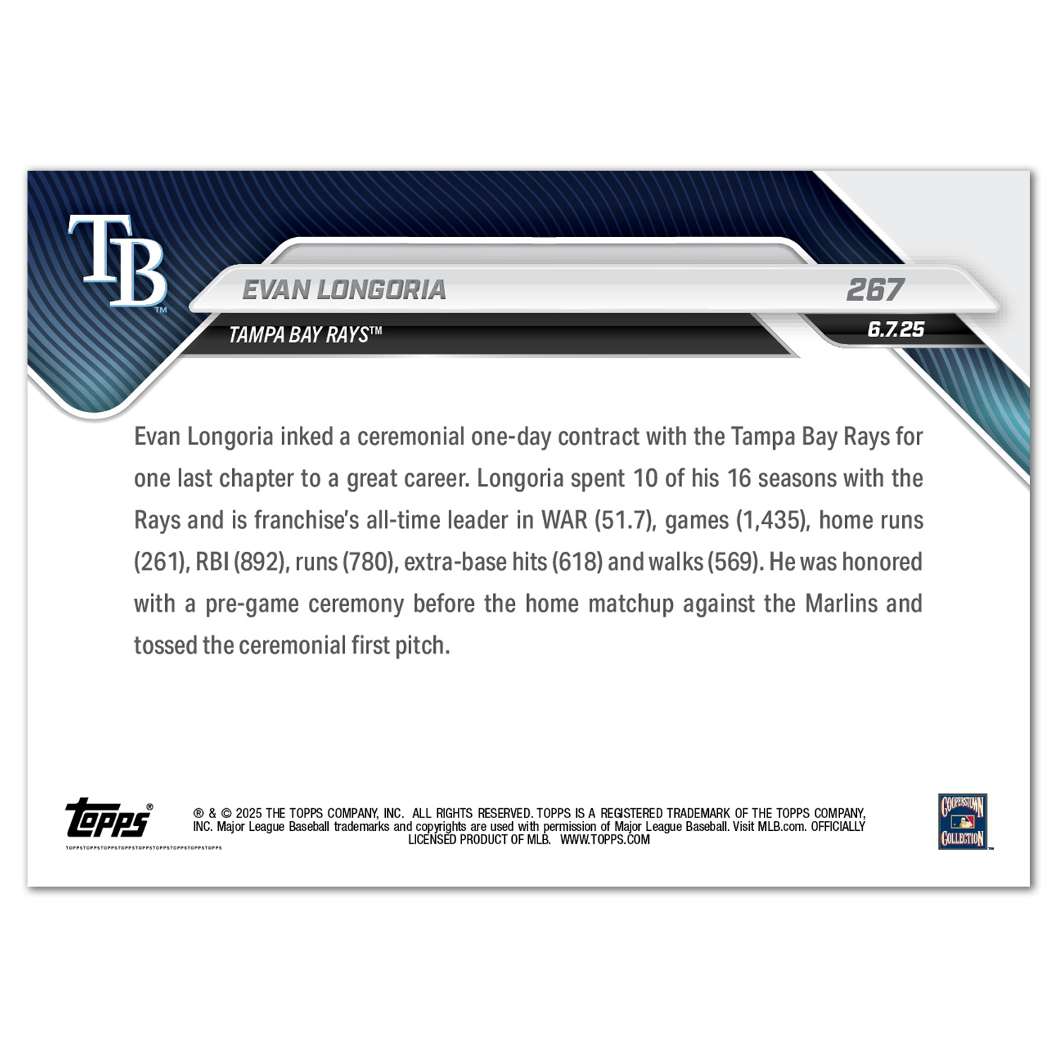 Evan Longoria - 2025 MLB Topps NOW® - Card 267