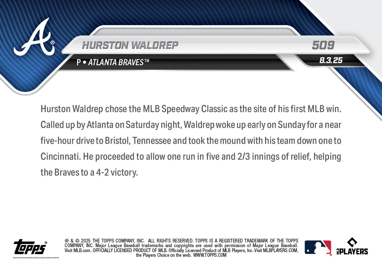 Hurston Waldrep - 2025 MLB Topps NOW® - Card 509