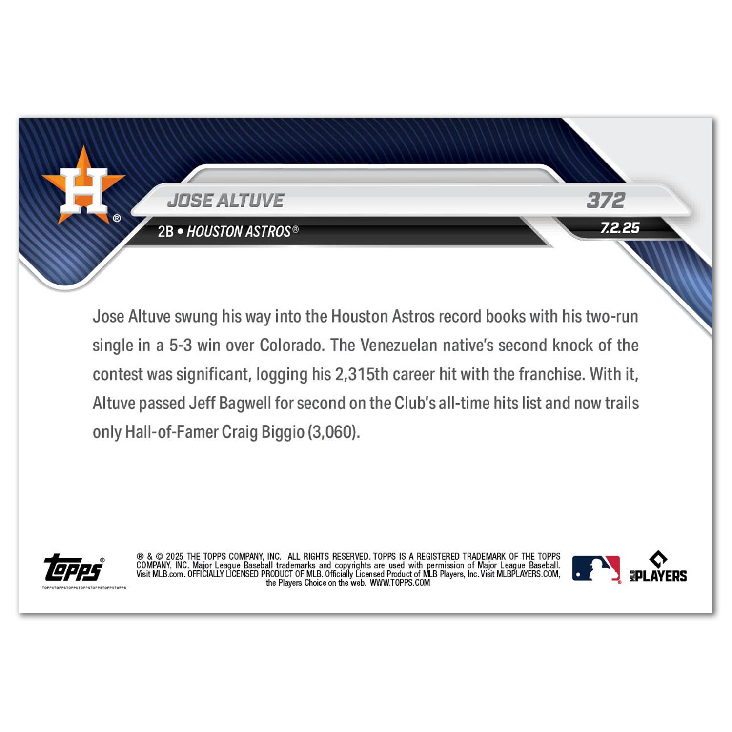 Jose Altuve - 2025 MLB Topps NOW® - Card 372 - LOOK FOR AUTOS
