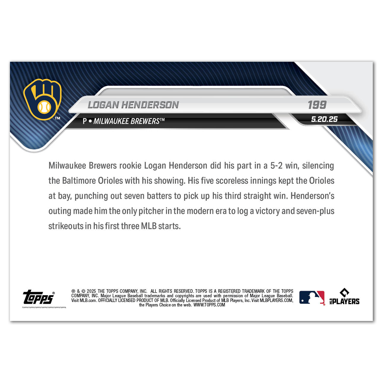 Logan Henderson - 2025 MLB Topps NOW® - Card 199