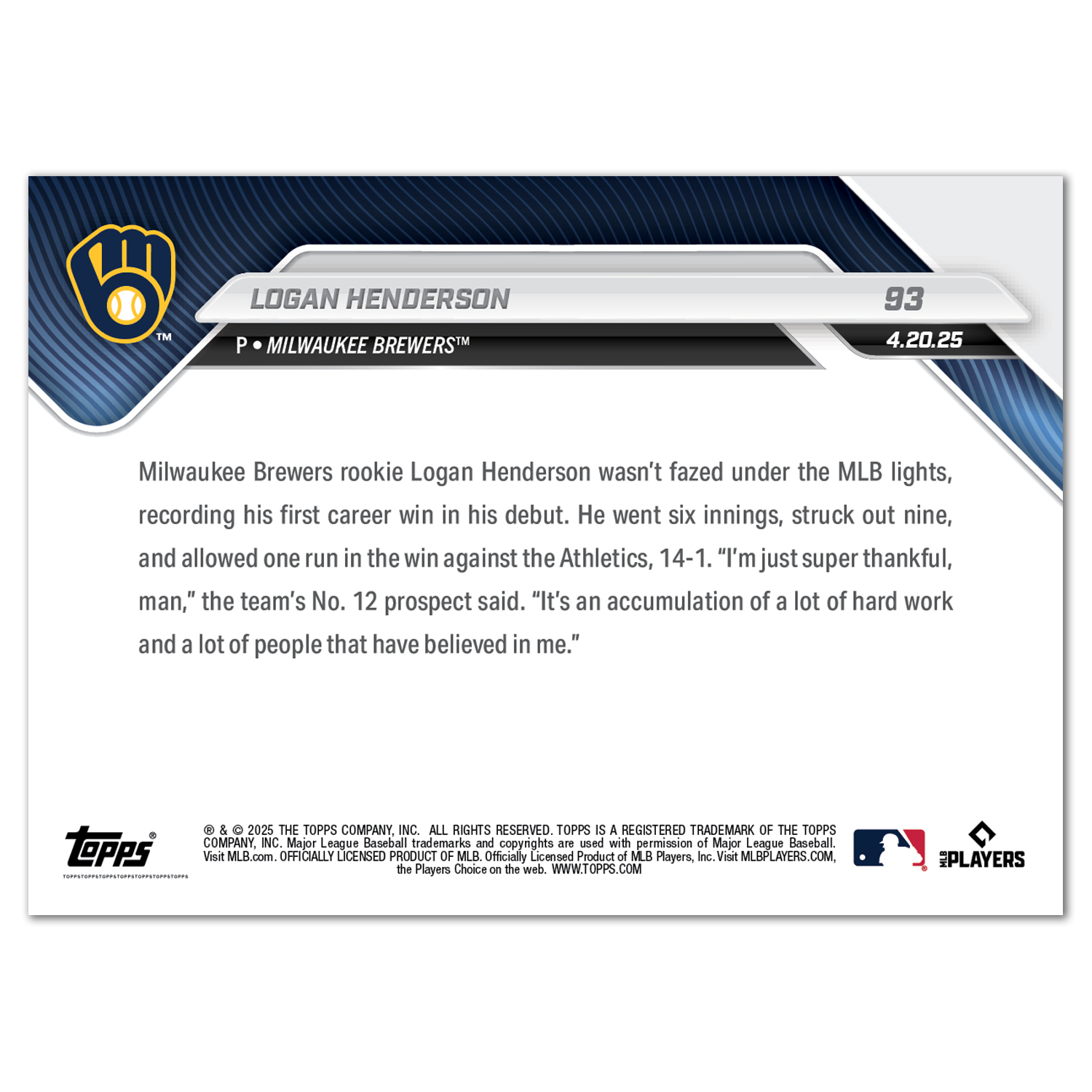 Logan Henderson - 2025 MLB Topps NOW® - Card 93
