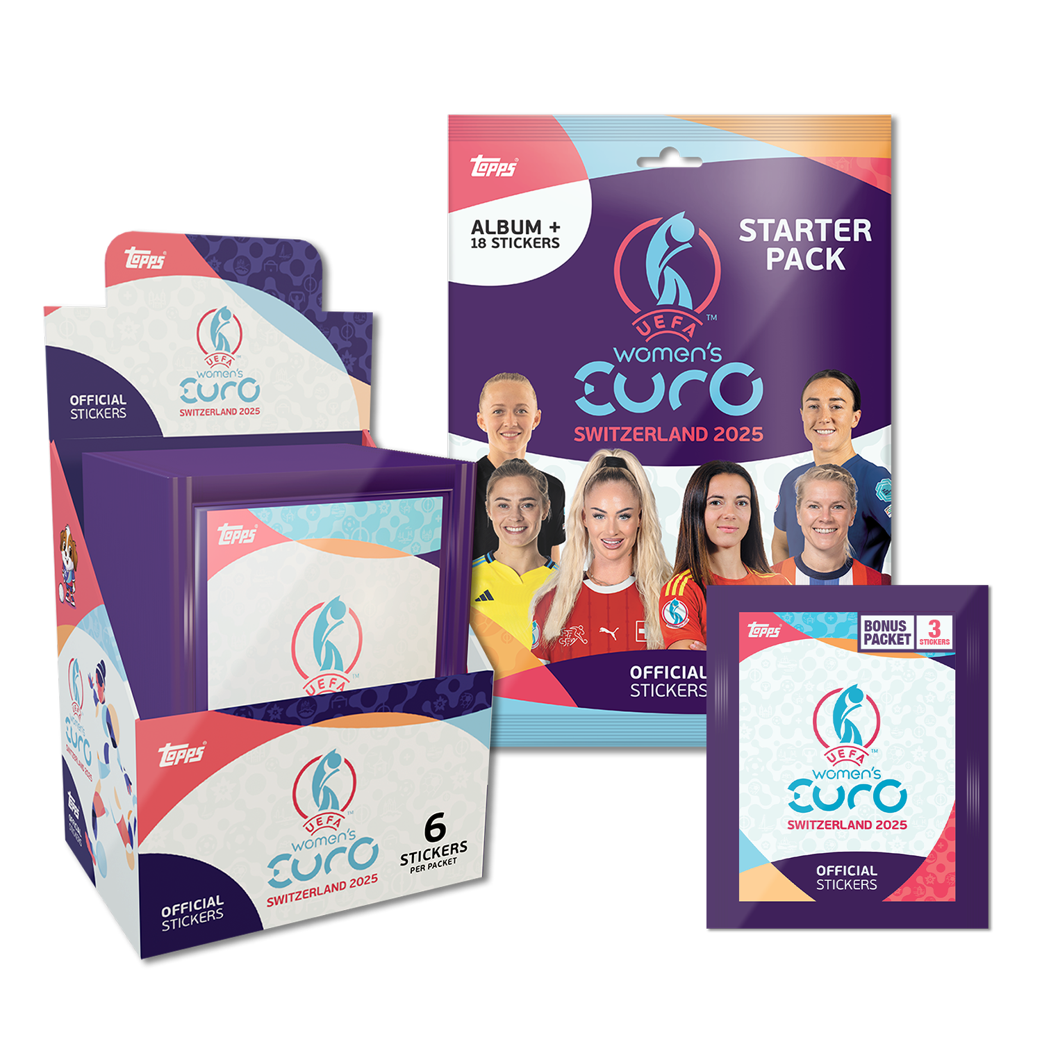 The inaugural Women's Euro Sticker Collection from Topps has landed and celebrates the Women's Euro 2025 tournament with an amazing 40-page album and 308 stickers to collect from all 16 qualified nations. Packed full of exciting categories such as Team Pages, Road to..., Host Cities, Shining Stars, One to Watch, Legends plus much more this collection has everything you need to get closer to the action of the Women's Euros this summer.