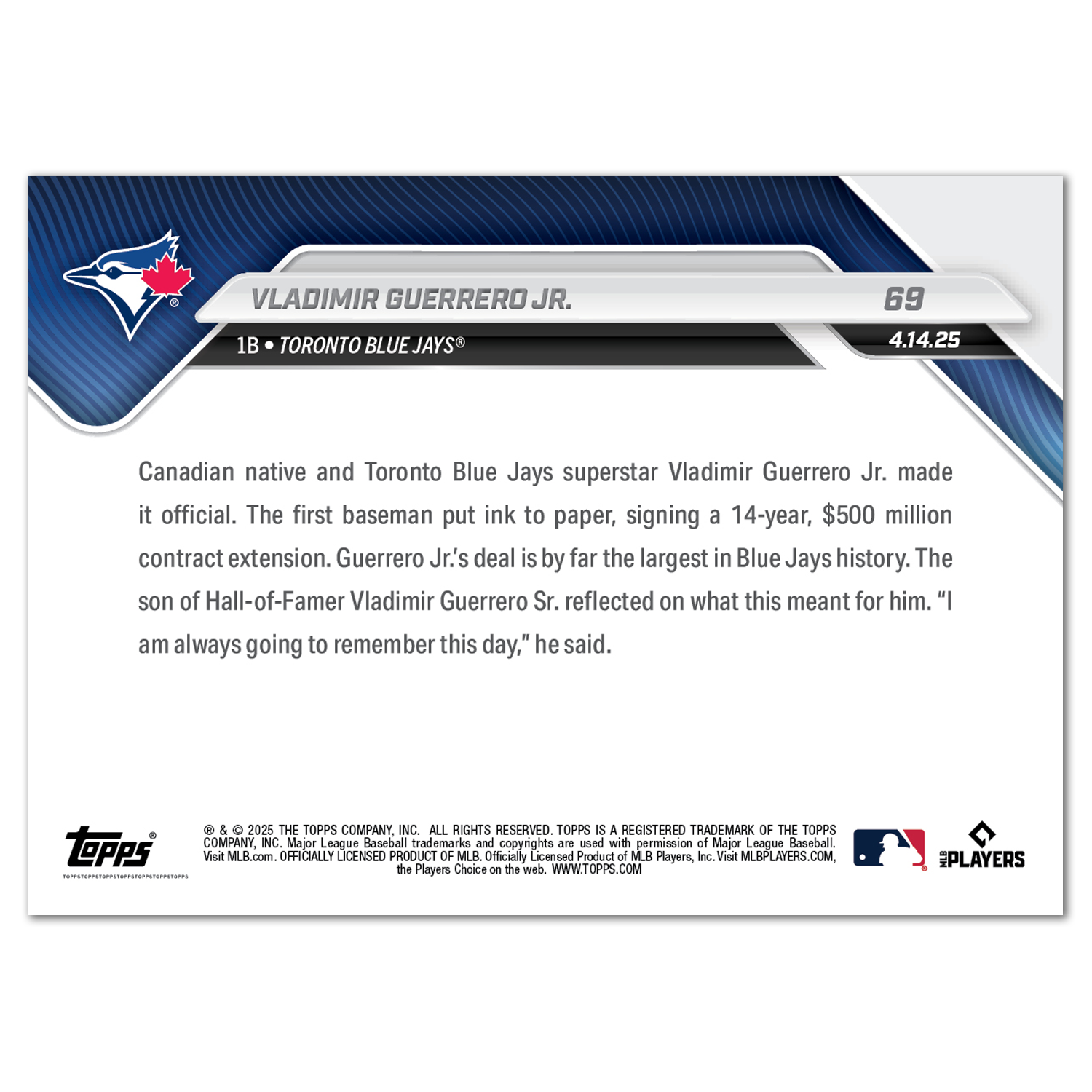 Vladimir Guerrero Jr. - 2025 MLB Topps NOW® - Card 69